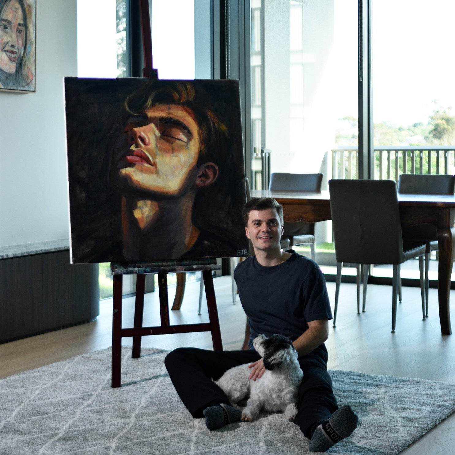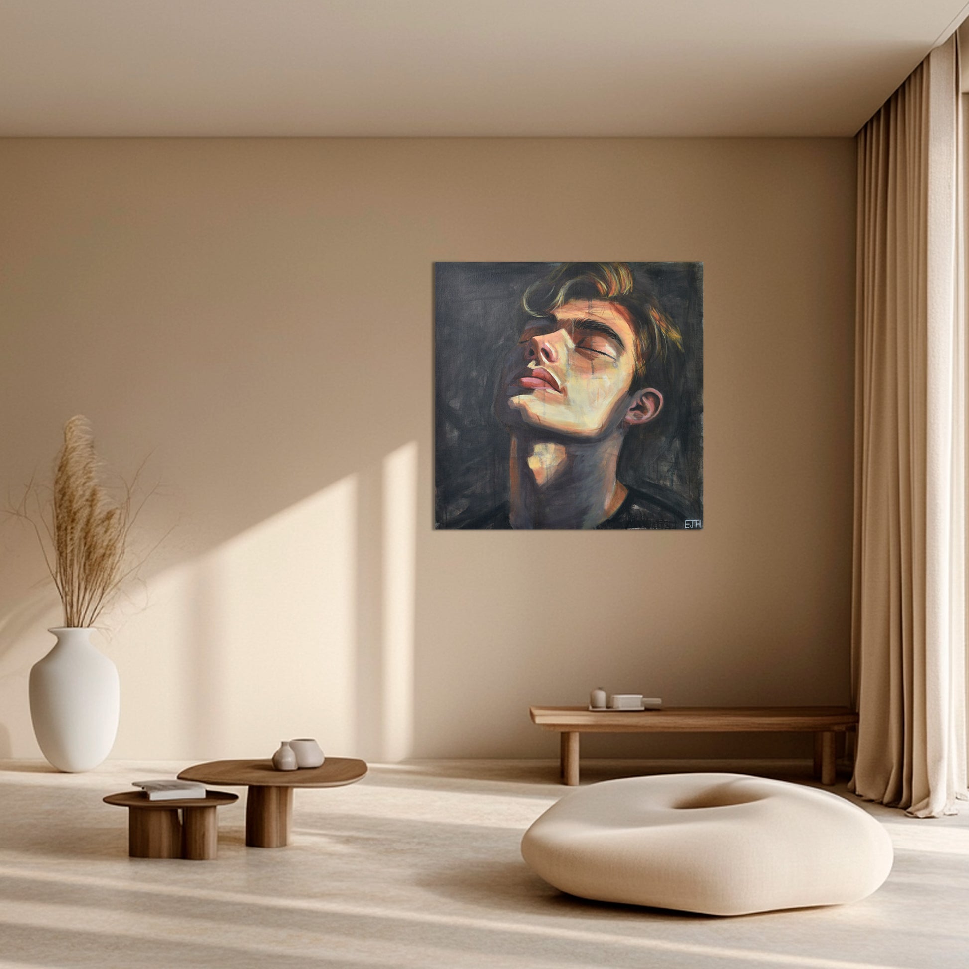 Edward's portrait captures a man deep in meditation. He painted the subject with a quiet sensitivity and softness, embracing a gentle realism that harmonizes his stillness with the golden warmth of natural light. Sunlight washes across his face in calm, flattened tones, mirroring the steady rhythm of breath and contemplative thought. The result is an intimate, grounded portrait that conveys a powerful sense of centred calm.