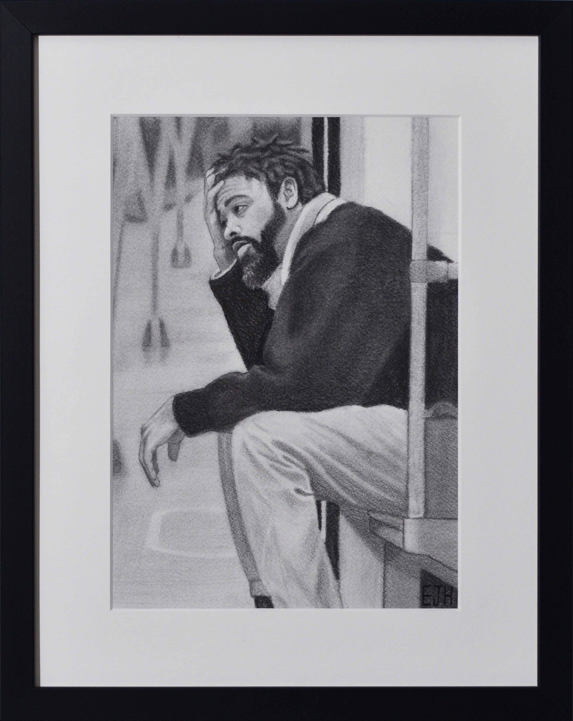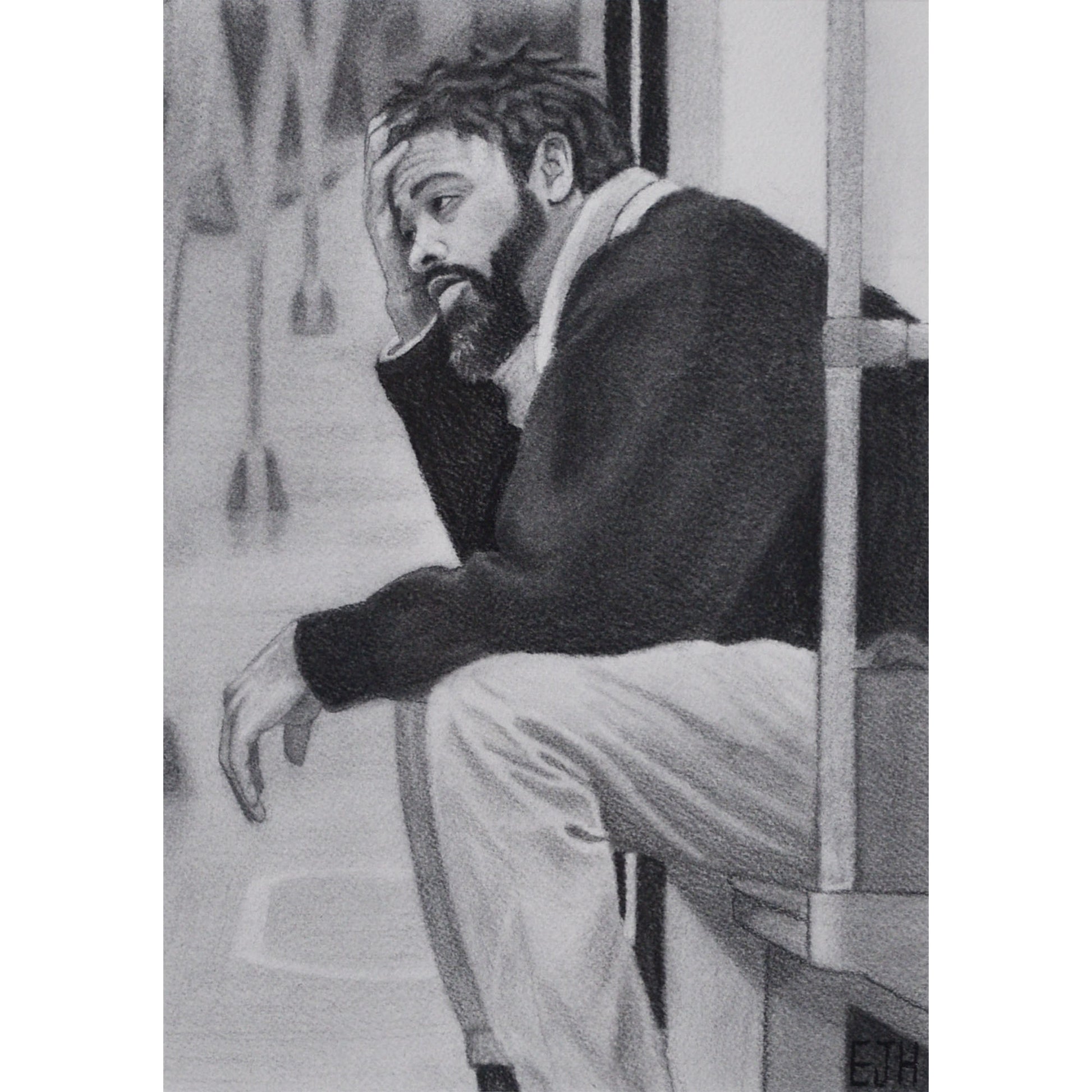 To enhance this emotional weight, Edward merged multiple photographs to actively restructure the perspective. The setting is intentionally less rendered and the figure is drawn more realistically. This technique directs our attention entirely to Shay’s thoughts, decisions, and emotions. Ultimately, this isolated moment speaks directly to Edward’s own life and the feeling of constantly finding himself down the alternative path.